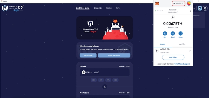 1. Add ‘Arbitrum one’ network on Wardenswap.finance