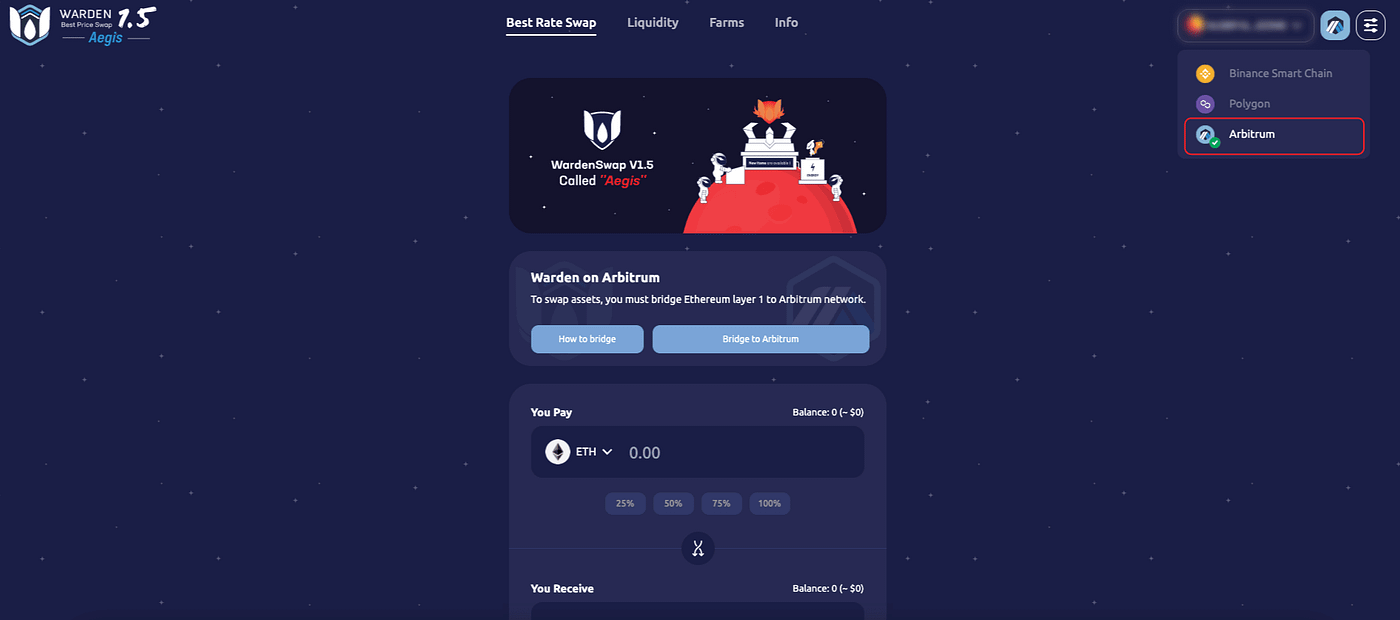 1. Add ‘Arbitrum one’ network on Wardenswap.finance