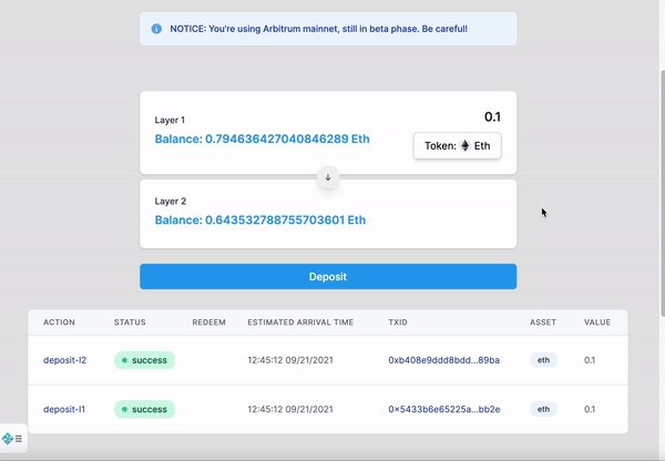 Enter the amount of ETH/tokens you want to bridge over in the “L1” field and then press “deposit”. Follow the steps on Metamask.