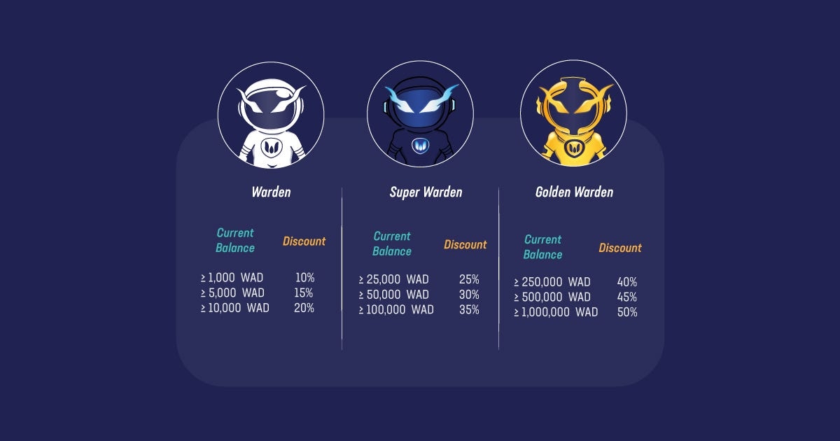 This new trading fee scheme consists of 9 levels. Anyone who holds WAD tokens in a certain amount will get a discount on every trading as follows: